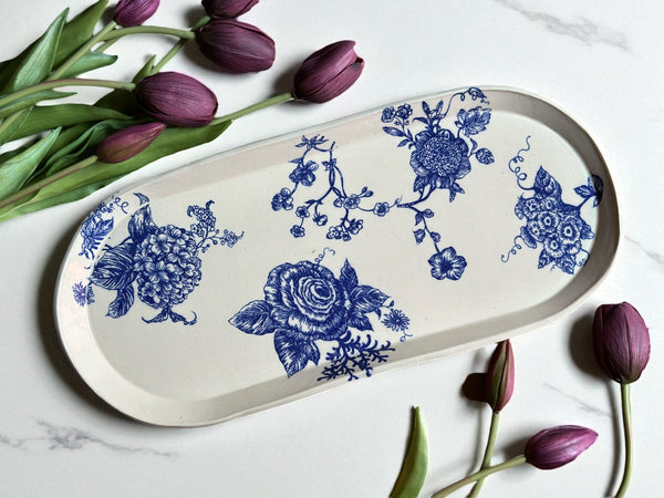 Blue Floral Platter & Bowl Set - Ready to Ship