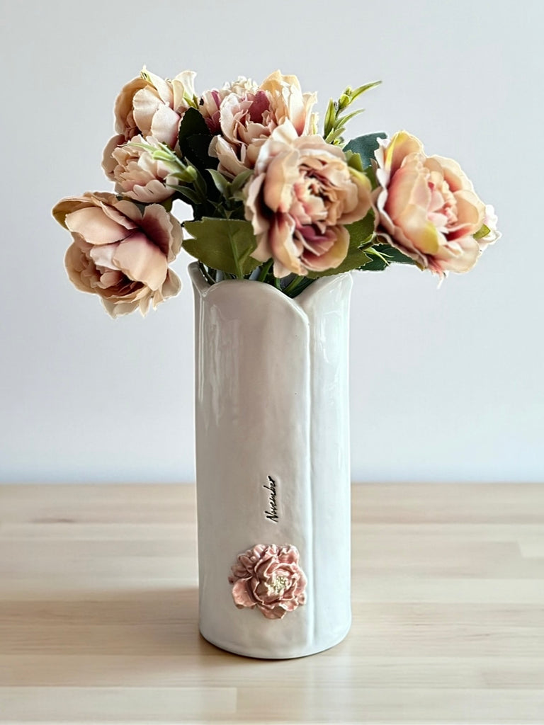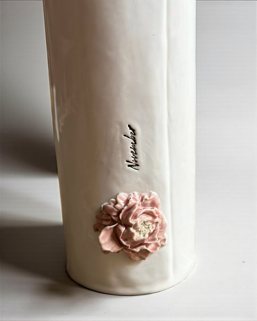 Celebrate the beauty of November with this handcrafted ceramic vase, thoughtfully designed with timeless details to honor the season and its birth flower, the Peony.