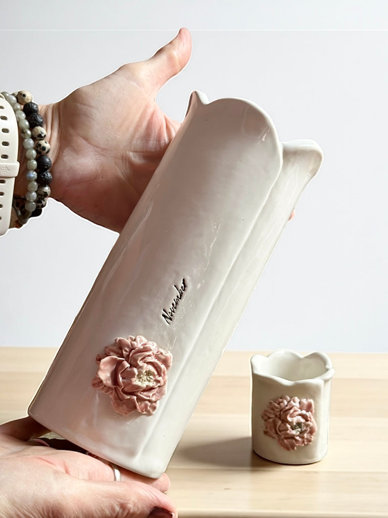 Matching November vase and scalloped “November” plate. (see separate listings)