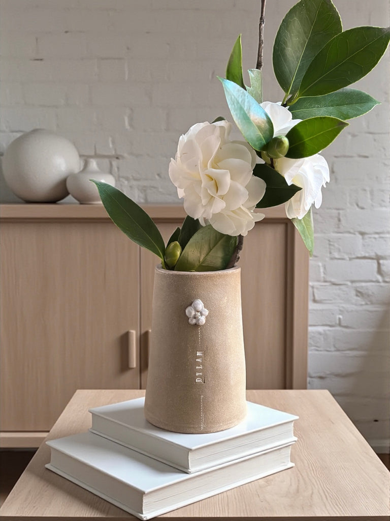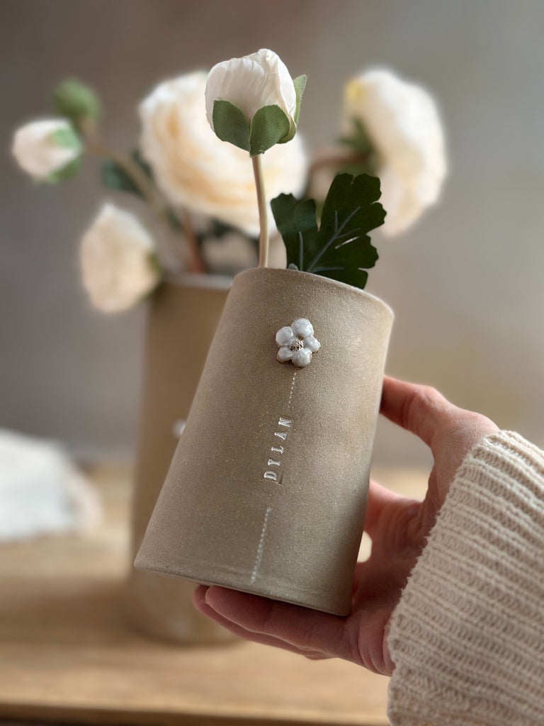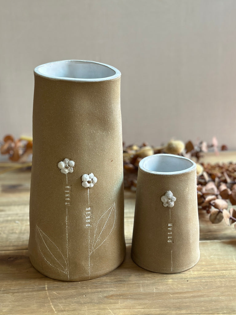 / Personalized Family Heritage Bud Vase — Natural Clay Edition