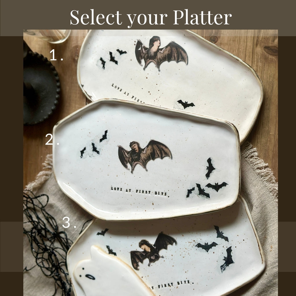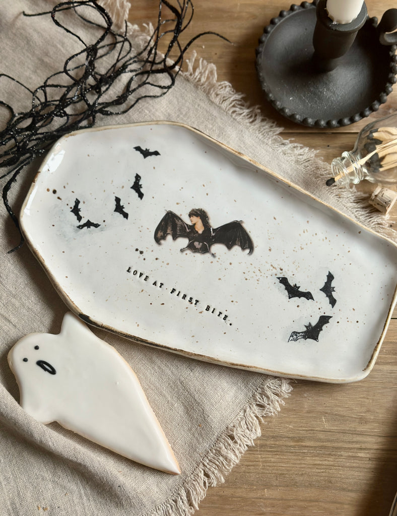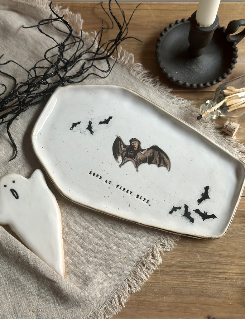 Love at First Bite Coffin Plate – Handmade Halloween Serving Dish