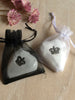 Each heart can be personalized with one or two words of your choice. An optional white or black organza gift bag is available for easy gifting.