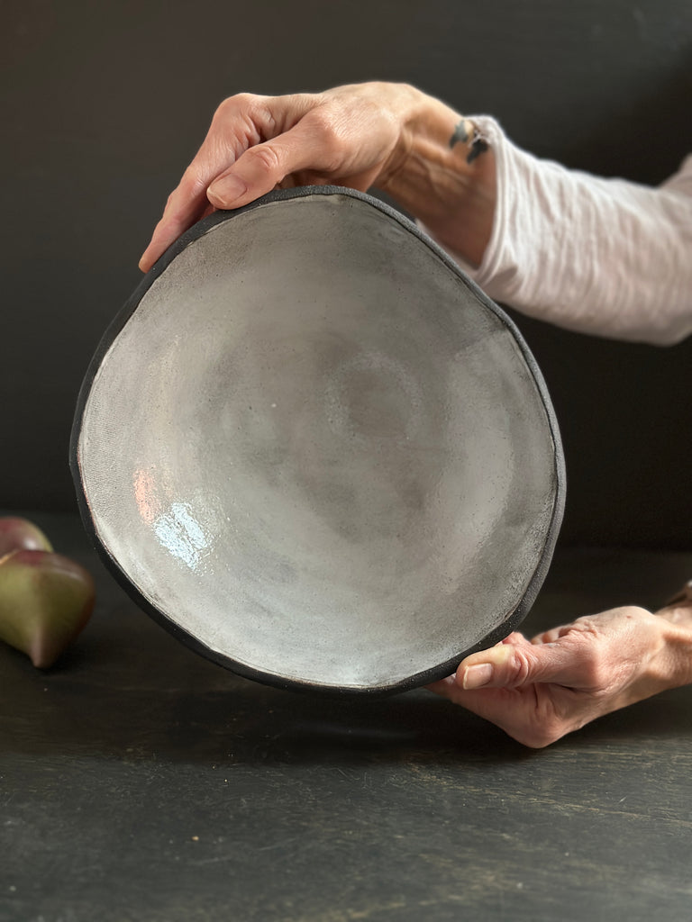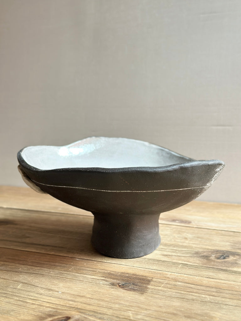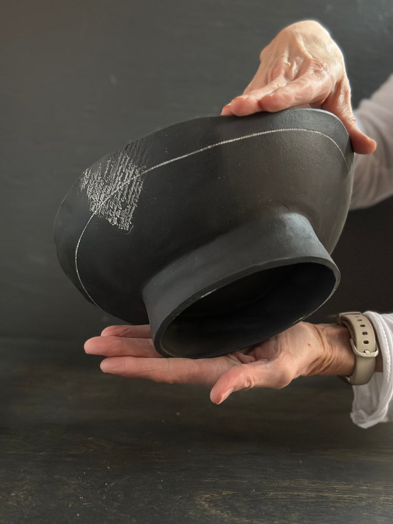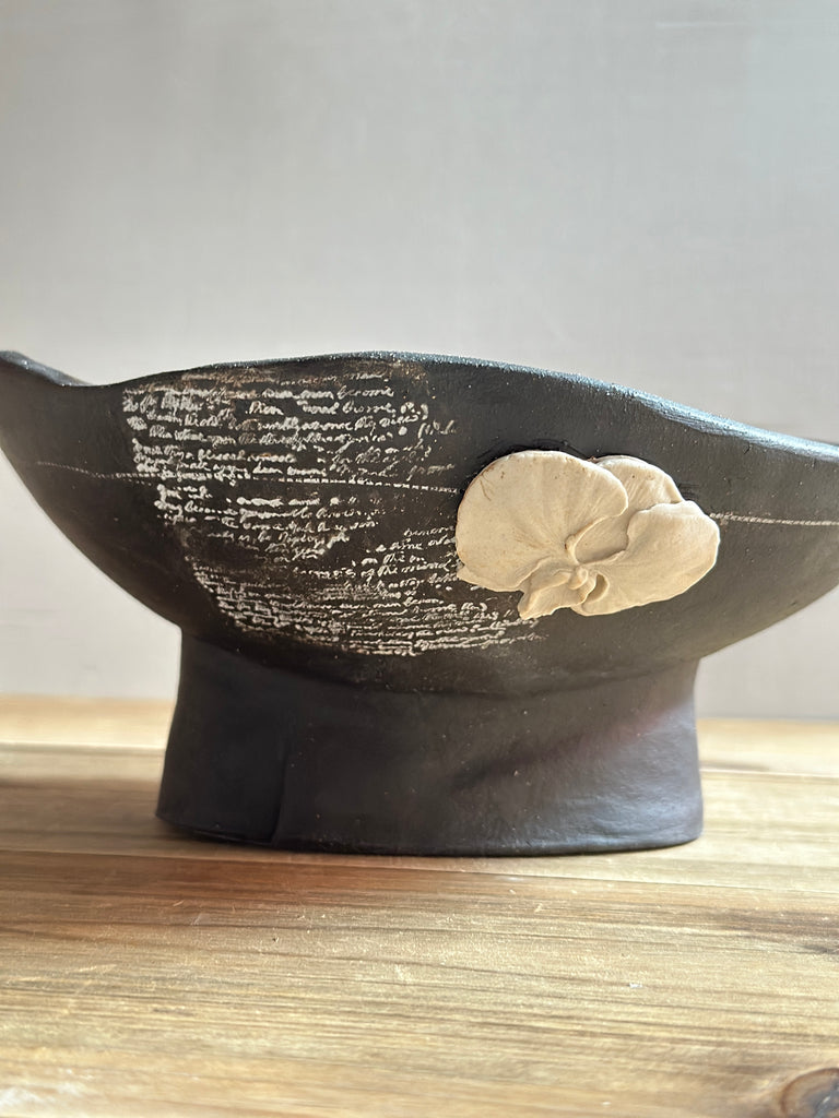 Sculptural Orchid Bowl — Black Clay & Porcelain