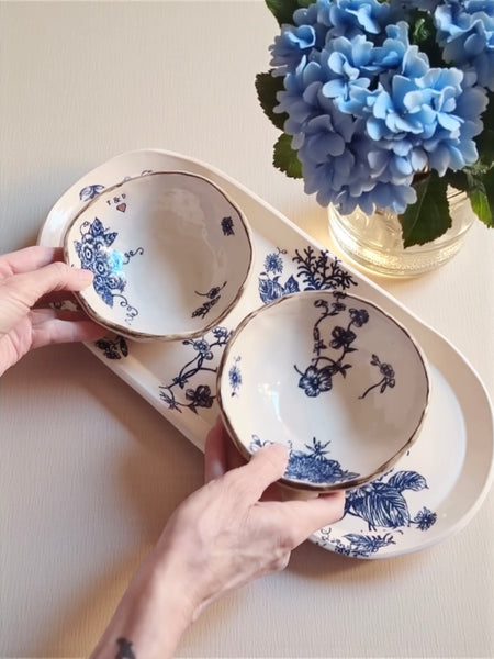 Blue Floral Platter & Bowl Set - Ready to Ship