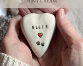 This personalized ceramic heart and tray gift box serves as a cherished pet memorial and sympathy gift, keeping your beloved companion’s memory close. Each piece is handcrafted with care, stamped with your pet’s name and paw prints, and glazed to create a timeless remembrance you can display or give as a heartfelt gift.